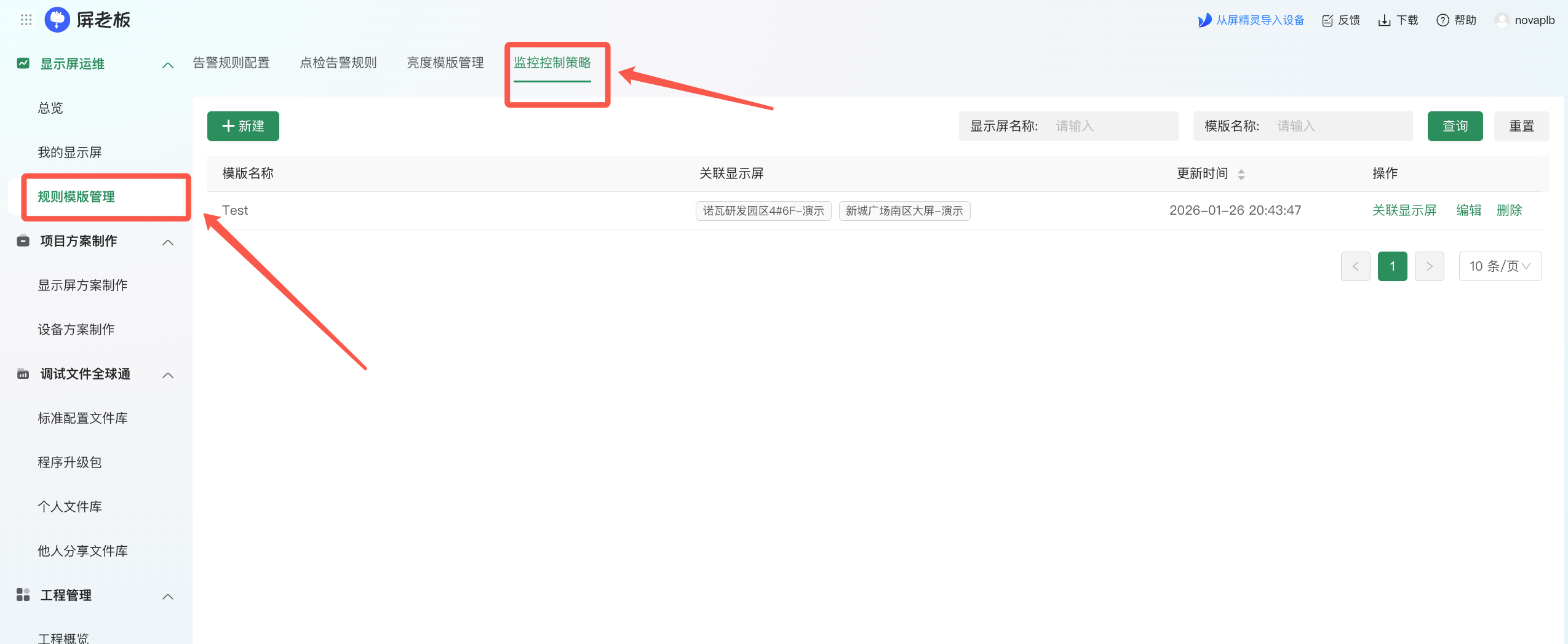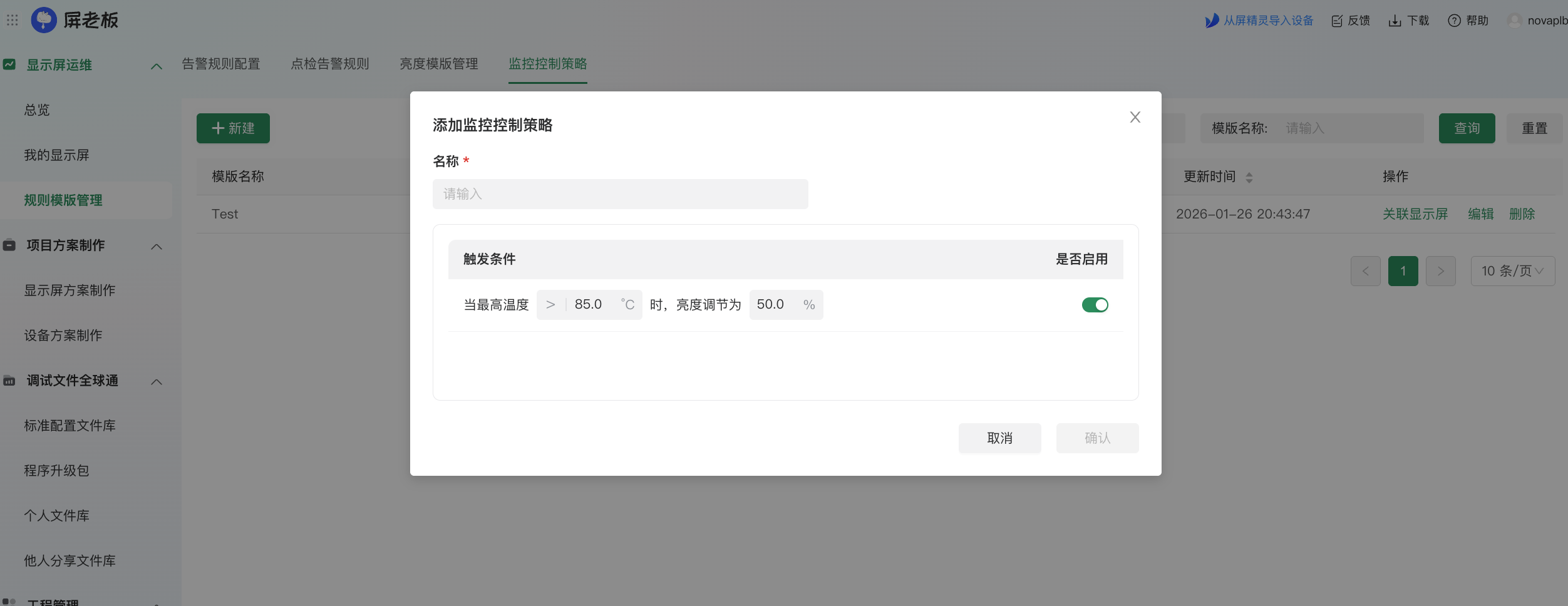 - 新增监控控制策略(当最高温度>XX°C,调节亮度为XX%)