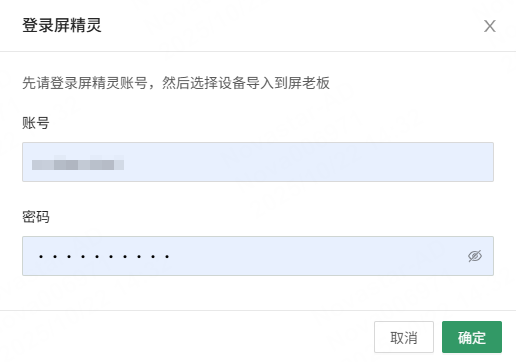 步骤 2:在弹出窗口中输入屏精灵账号和密码,单击“确定”。