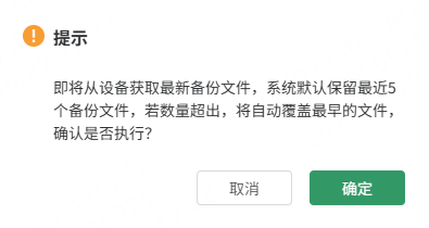 步骤 2:在弹窗中单击“确定”,获取设备最新备份文件。
