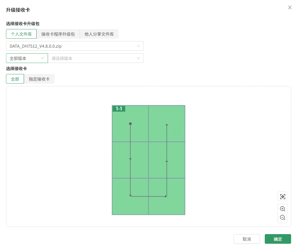 步骤 3:选择升级接收卡方式,包括“全部”或“指定接收卡”。
