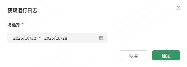 单击“获取运行日志”,在弹窗中选择“开始日期”和“结束日期”(最多可获取30天的运行日志),单击“确定”。