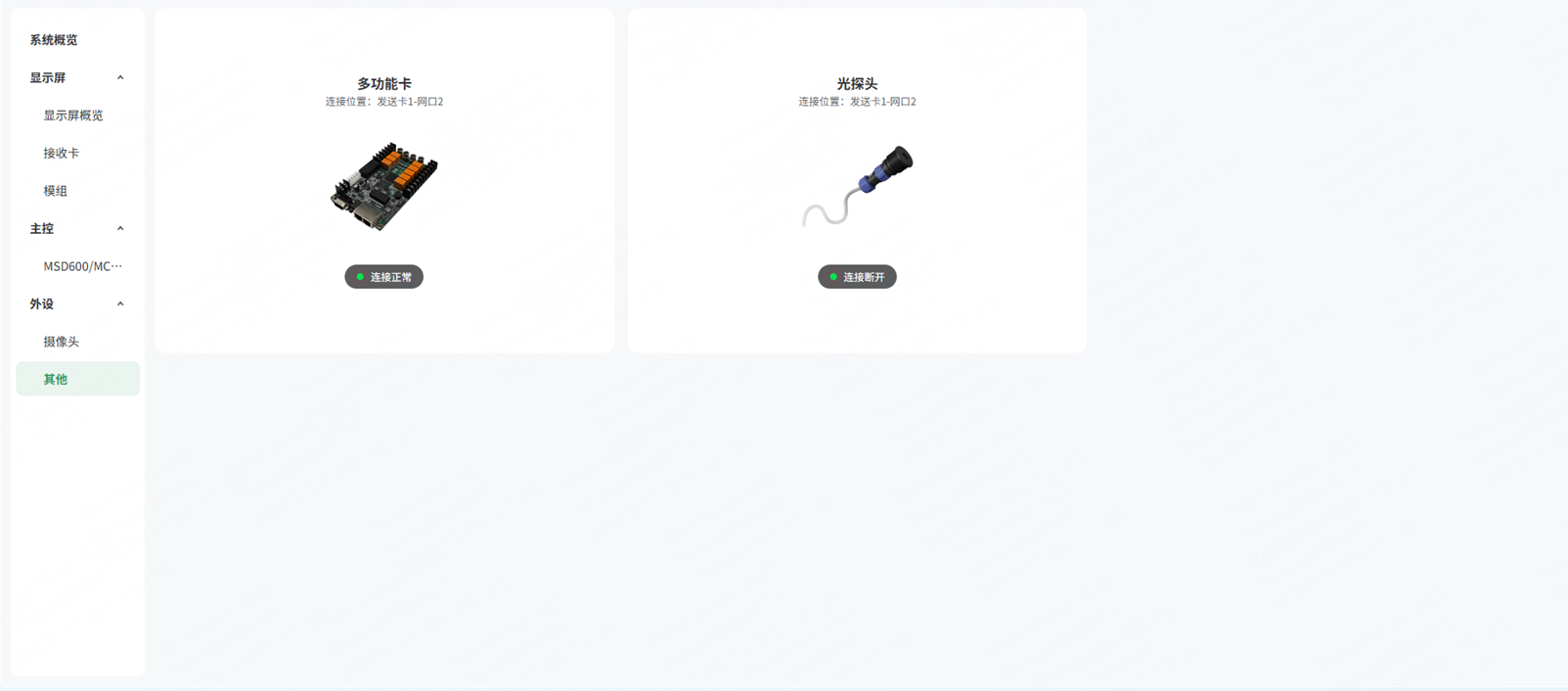 - 鼠标悬浮在接收卡上时,可展示位置、型号、版本(FPGA、MCU)、电压。