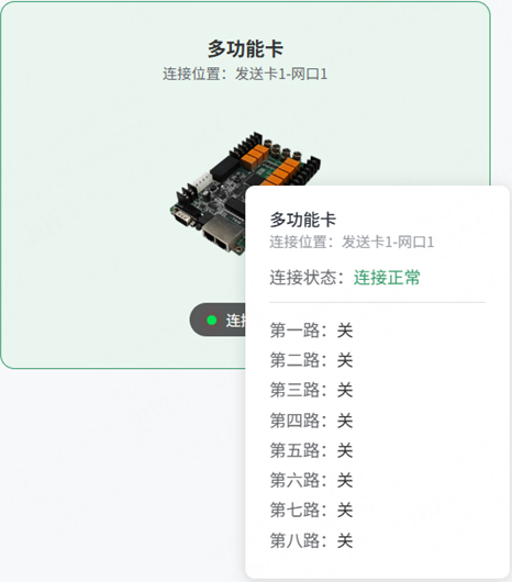 - 鼠标悬浮在接收卡上时,可展示位置、型号、工作状态。