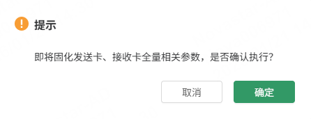 在弹窗中单击“确定”,可固化发送卡、接收卡全量相关参数。